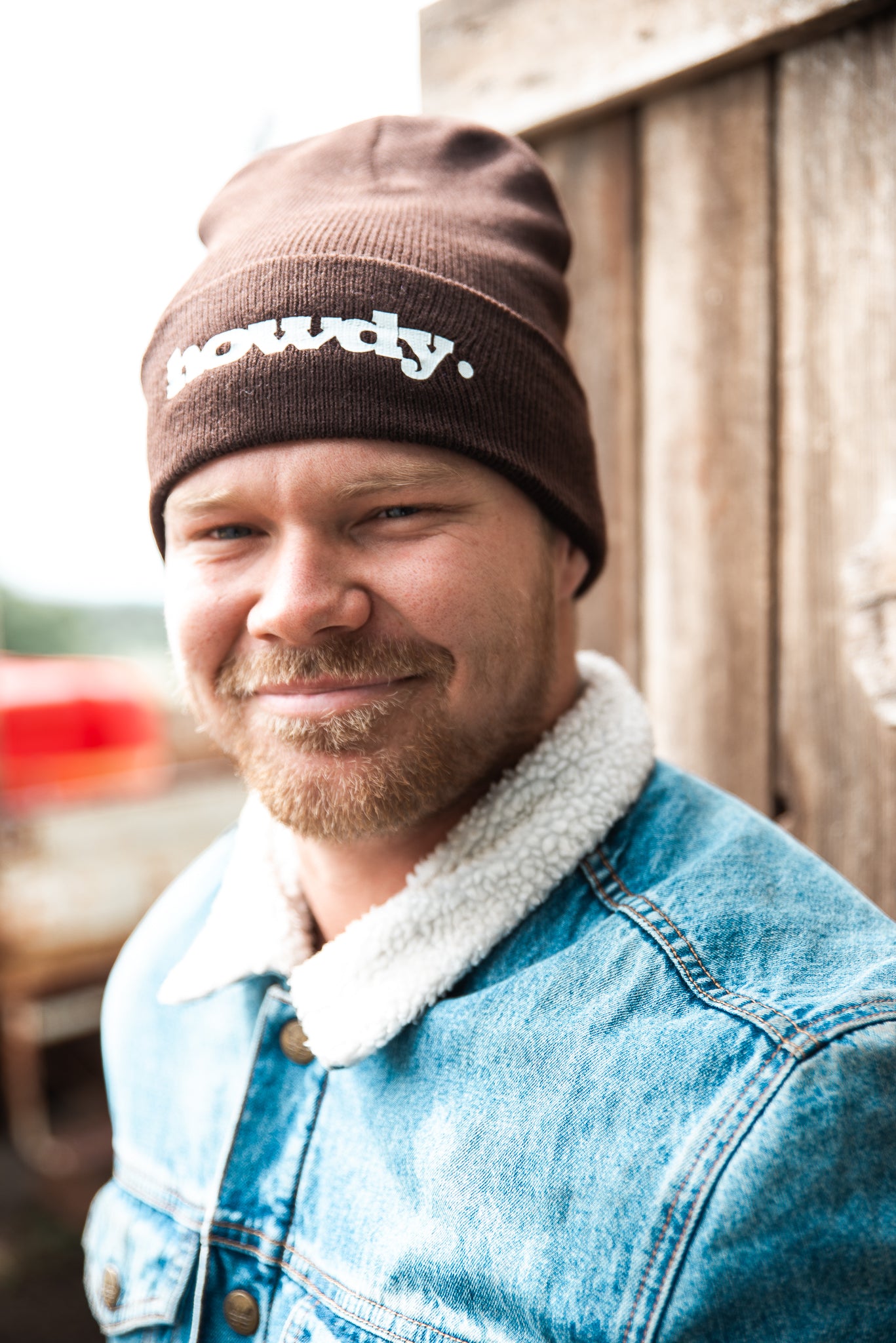 Chocolate brown beanie featuring 'Howdy'. Perfect for those cooler winter days!