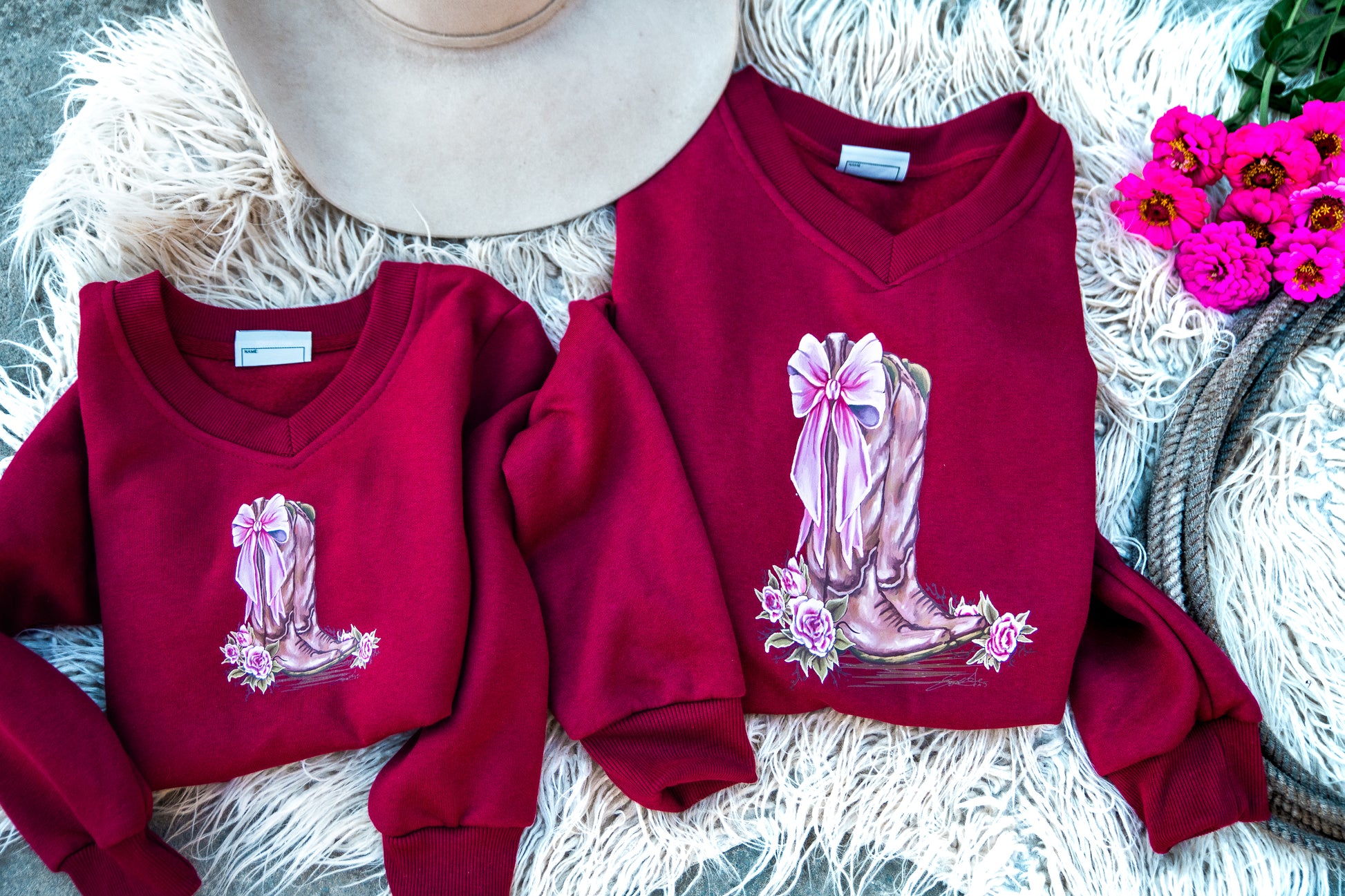 High quality cotton/ polyester mix sweater featuring original boots design by Miss Jonesy Finearts. Matching women's sweater available.